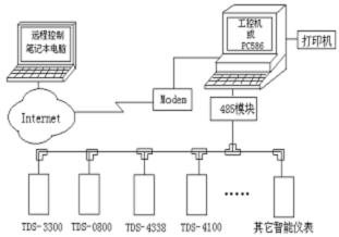操作站到適配器之間采用高速串行或多串口通信。傳輸距離不大于20米。適配器到儀表之間采用RS485總線網(wǎng)絡型或RS232一一對應輻射型。傳輸距離不大于1500米。