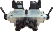 1、電磁換向閥 2、電磁換向閥手動旋鈕 3、手動轉(zhuǎn)閥1 4、集成塊 注:圖示 P-接至壓力氣源 A、B-接至工作腔 a1、a2、a3-接至壓力測量儀表(或用堵頭堵。