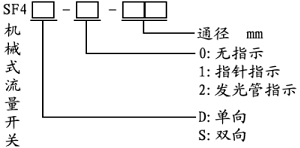 SF4型機(jī)械式流量開(kāi)關(guān)用于測(cè)量流經(jīng)管道的液體流動(dòng)狀態(tài), 如:水、油、乙稀、乙二醇等對(duì)銅無(wú)腐蝕作用的液體。是一種新型的檢測(cè)裝置,廣泛用于水電站供水系統(tǒng)斷水保護(hù)。采用日本歐姆龍微動(dòng)開(kāi)關(guān),動(dòng)作輕巧。 二、型號(hào)說(shuō)明